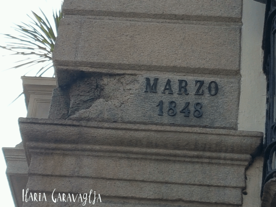 Quello che vedete in foto è un angolo di palazzo tra corso Venezia e via della Spiga. Mostra ancora i colpi delle cannonate ricevute dagli austriaci durante le V giornate appunto, così come si può leggere anche sull’iscrizione.